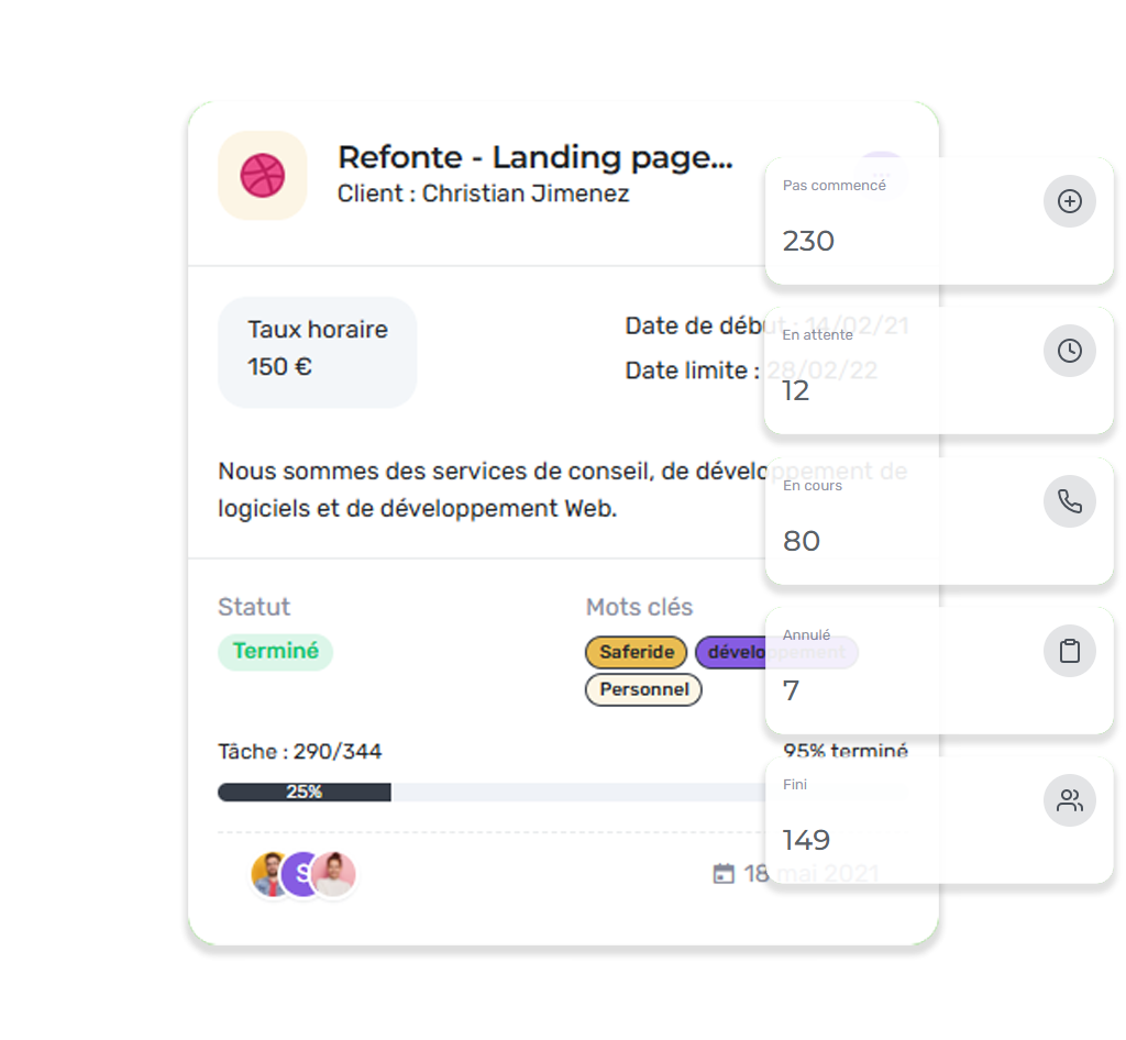 Ce logiciel de gestion de la relation client vous aide à suivre vos prospects, vos clients et vos tickets. Communiquez avec vos clients avec un portail client, collaborer avec eux sur vos projets.
